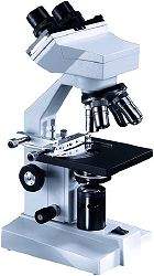 binokular mit 2 x Okularen WF 15x, Objektive achromat. 4x, 10x, 40x, 100x Öl (40x und 100x mit Präparateschutz), eingebaute Beleuchtung 230V/20W, Objektführer, Grob- und Feintrieb, höhenverstellbarer Kondensor NA 1.2 mit Filterhalter